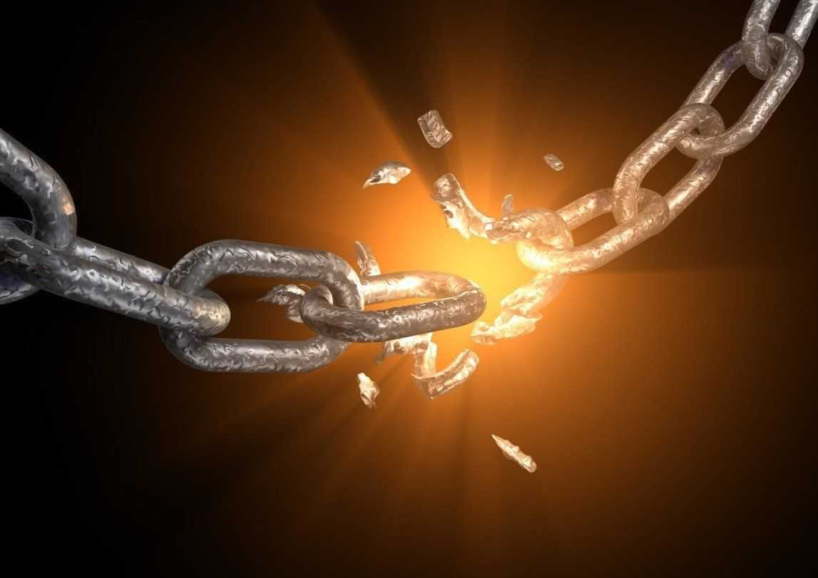 A metallic chain with an explosed link.